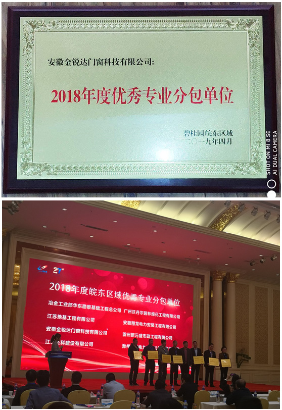 熱烈祝賀我司榮獲碧桂園皖東區(qū)域“2018年度優(yōu)秀專業(yè)分包單位”