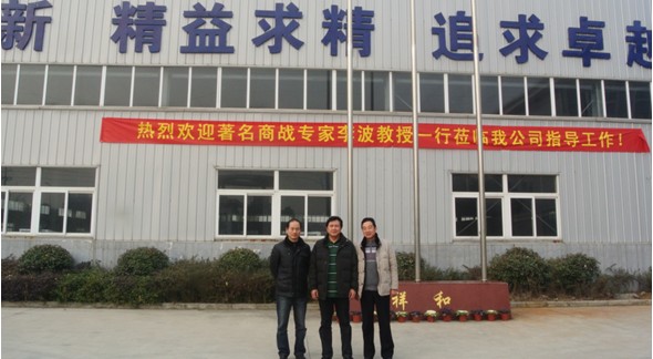 元月13日上午,著名商戰(zhàn)專家李波教授一行蒞臨我公司調(diào)研并指導(dǎo)工作。李波教授一行在我公司領(lǐng)導(dǎo)和有關(guān)專家的陪同下,首先參觀了我公司的生產(chǎn)車間、廠容廠貌,隨后針對(duì)我公司的生產(chǎn)環(huán)境和周邊環(huán)境進(jìn)行調(diào)研指導(dǎo)。